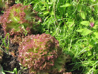 Steinschaler Gärten zwei Salate im Beet Bild: J. Weiß - Steinschaler Naturhotels Bild darf nur mit klaren Hinweis und Link auf den Urheber verwendet werden.